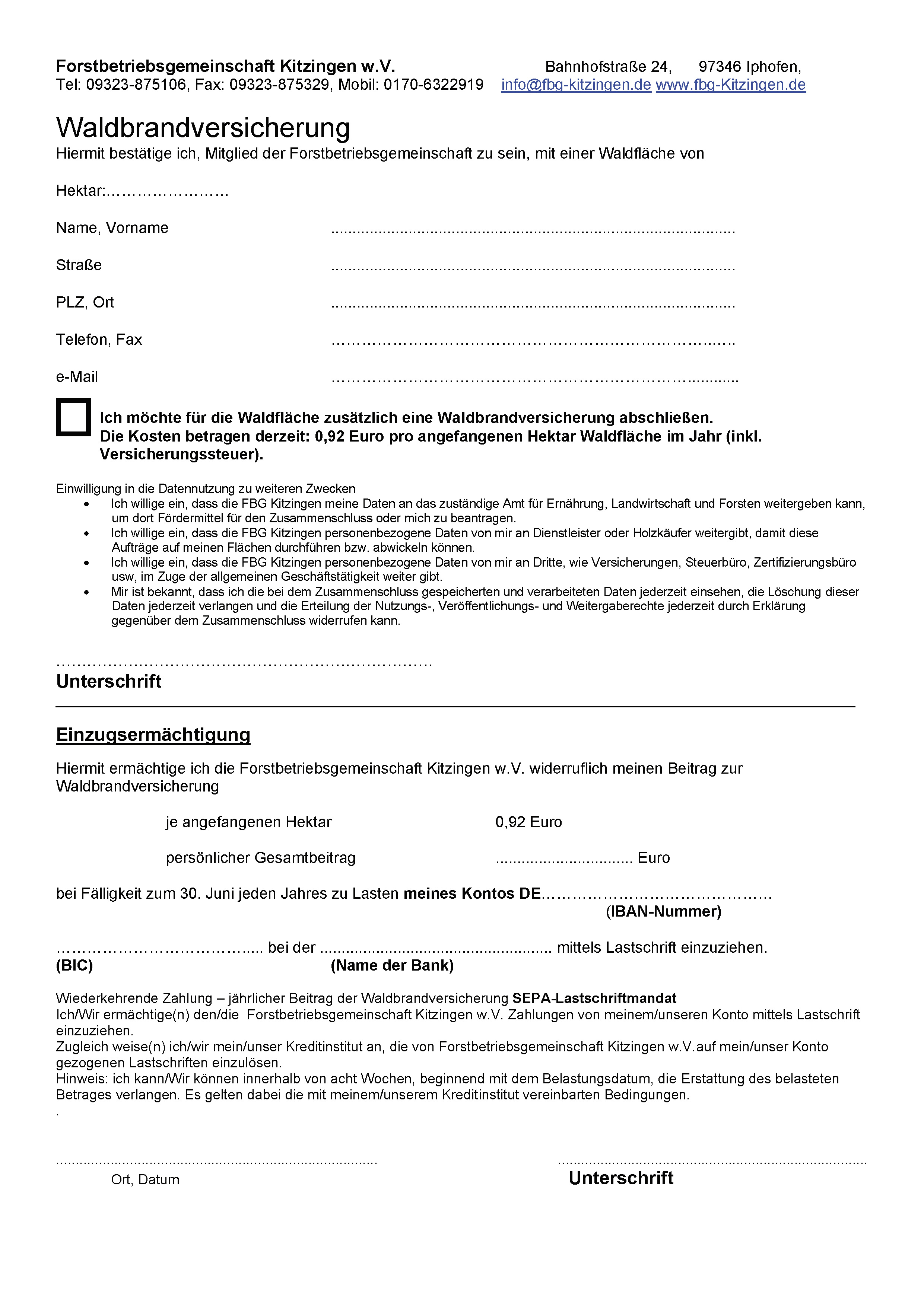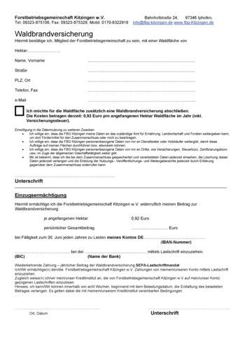 Sie wollen Mitglied werden ? oder benötigen eine Waldbrandversicherung?