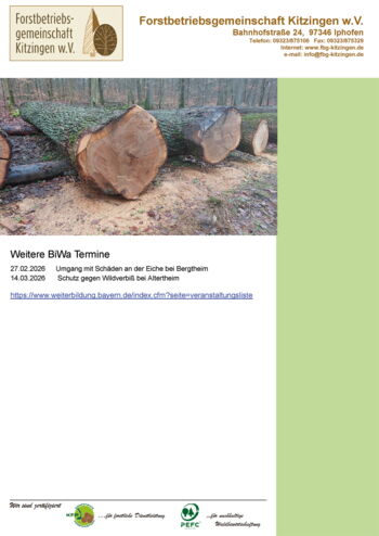 Das AELF veranstaltet zusammen mit der Forstbetriebsgemeinschaft Kitzingen am 6.3.2026 einen Praxistag für Waldbesitzer und Interessierte.
